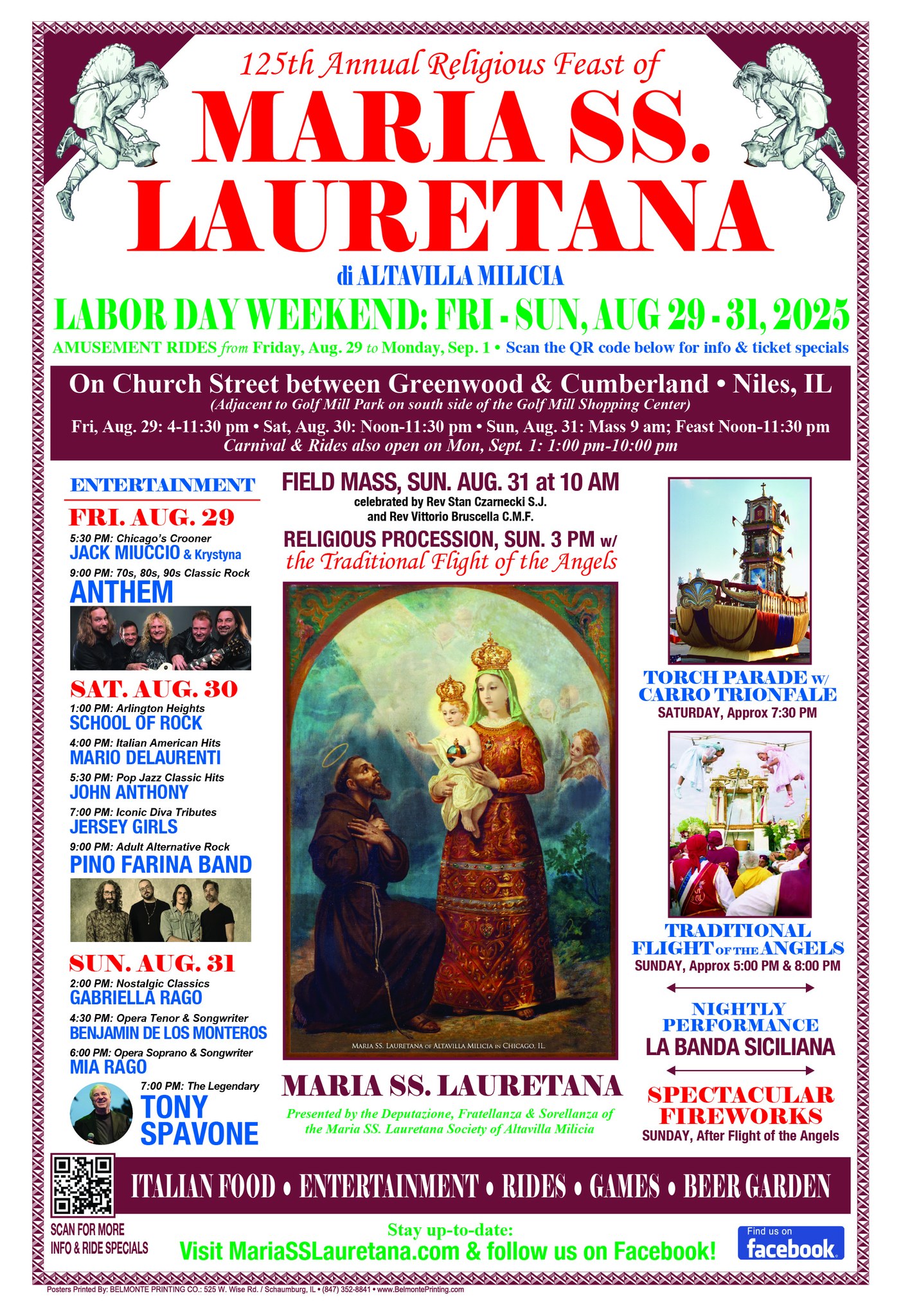 La comunità italo-americana di Chicago si prepara a vivere un appuntamento speciale con la tradizione e la fede: la 125ª Festa di Maria SS. Lauretana di Altavilla Milicia, che si svolgerà durante il Labor Day weekend, dal 29 al 31 agosto 2025, con una chiusura straordinaria lunedì 1° settembre dedicata al luna park. La celebrazione, nata oltre un secolo fa grazie agli emigrati provenienti da Altavilla Milicia, continua a essere un punto di riferimento per migliaia di fedeli e visitatori che vivano a Chicago e che negli ultimi anni si ritrovano a Niles, su Church Street tra Greenwood e Cumberland, per rinnovare la propria devozione alla Madonna e vivere insieme giorni di festa.