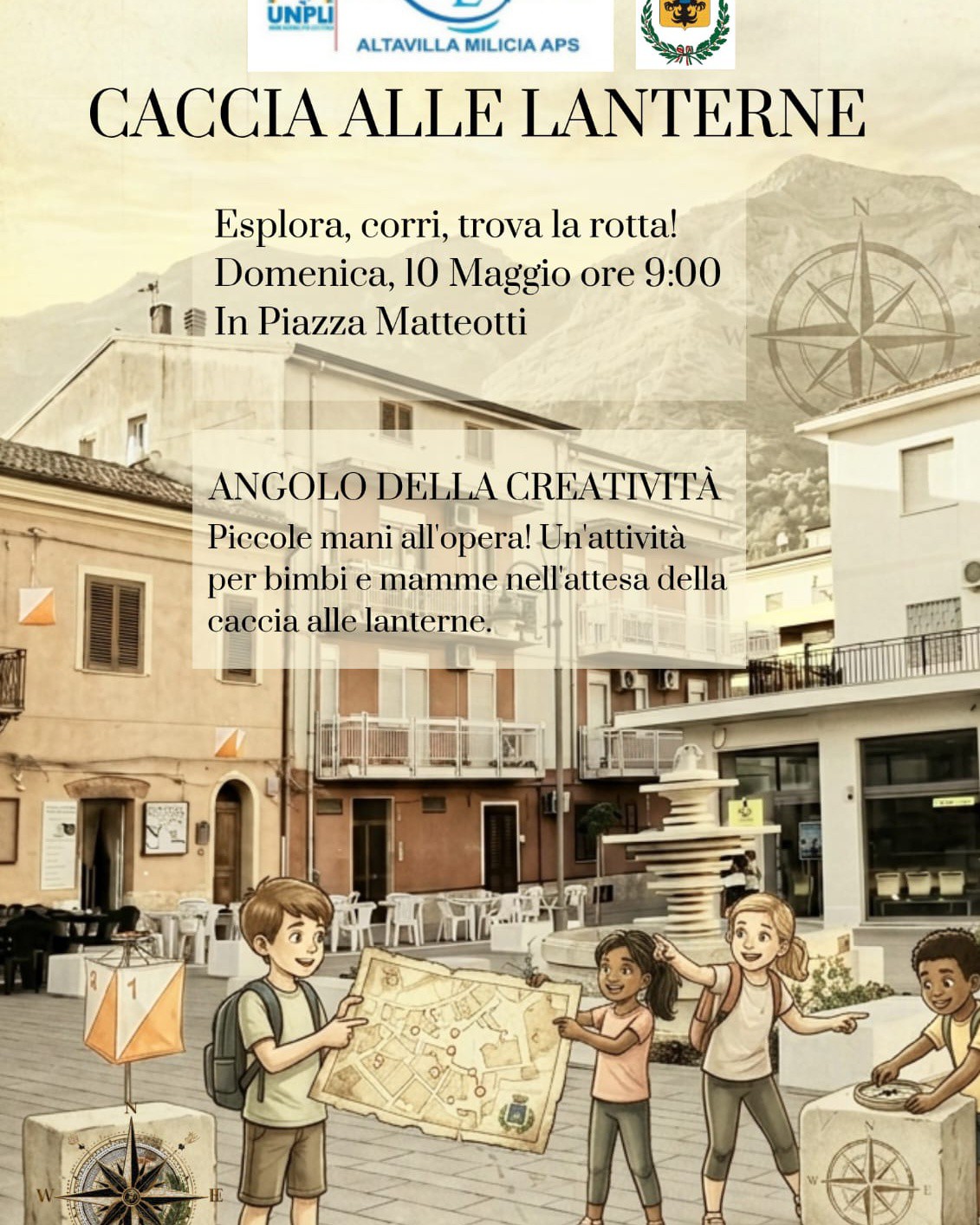 La Pro Loco di Altavilla Milicia APS, con il patrocinio del Comune di Altavilla Milicia, organizza per domenica 10 maggio 2026 un’iniziativa rivolta a bambini e famiglie dal titolo “Caccia alle lanterne”. L’evento si svolgerà a partire dalle ore 9:00 in piazza Matteotti.