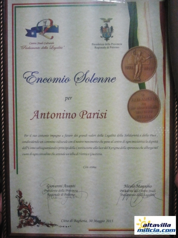 Il Sindaco Parisi riceve un encomio al liceo Artistico di Bagheria 30-05-2013