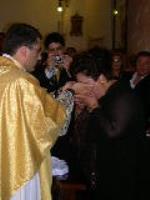 I genitori baciano le mani di padre D'Ugo