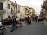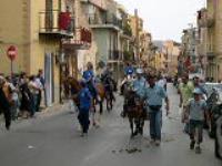 Cavalli e cavalieri accompagnao Padre D'Ugo e Diacono Mucia mentre fanno il giro del Paese