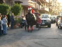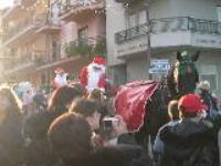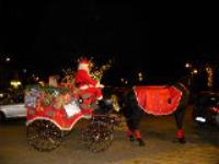 Natale 2009: carrozze trainate dai cavalli con Babbi natale che distribuiscono caramelle